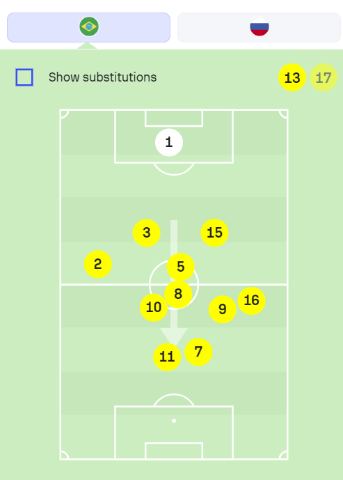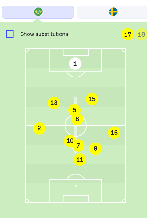 O Brasil sabia aproximar os jogadores para trocar passes curtos, mas também controlava o ritmo e a distância entre os passes. Sabia acelerar o jogo ou inverter rapidamente de lado. Vejam esse balanço da bola do lado direito para o esquerdo: