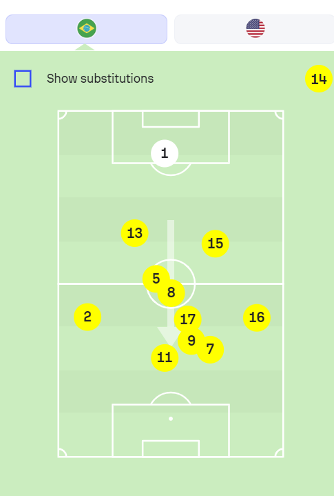 Vejam como o Brasil concentrava meias, volantes e atacantes do centro a esquerda com a bola do lado esquerdo, enquanto o lateral do lado oposto (Jorginho) se posiciona numa diagonal defensiva mais aberta: